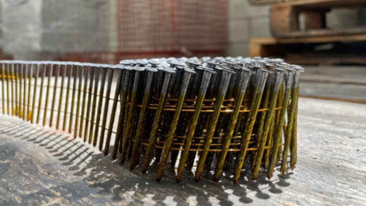 ROLL NAIL (COLLATED) FOR NEUMATIC GUN FOR THE ASSEMBLY CONSTRUCTION AND CARPENTRY INDUSTRY. THE NAIL CAN BE ROLLED OR RINGED IN DIFFERENT GAUGES AND MEASUREMENTS. THE PRESENTATION IS A BOX WITH 30 ROLLS OF 300 NAILS EACH ROLL TO HAVE 9000 NAILS